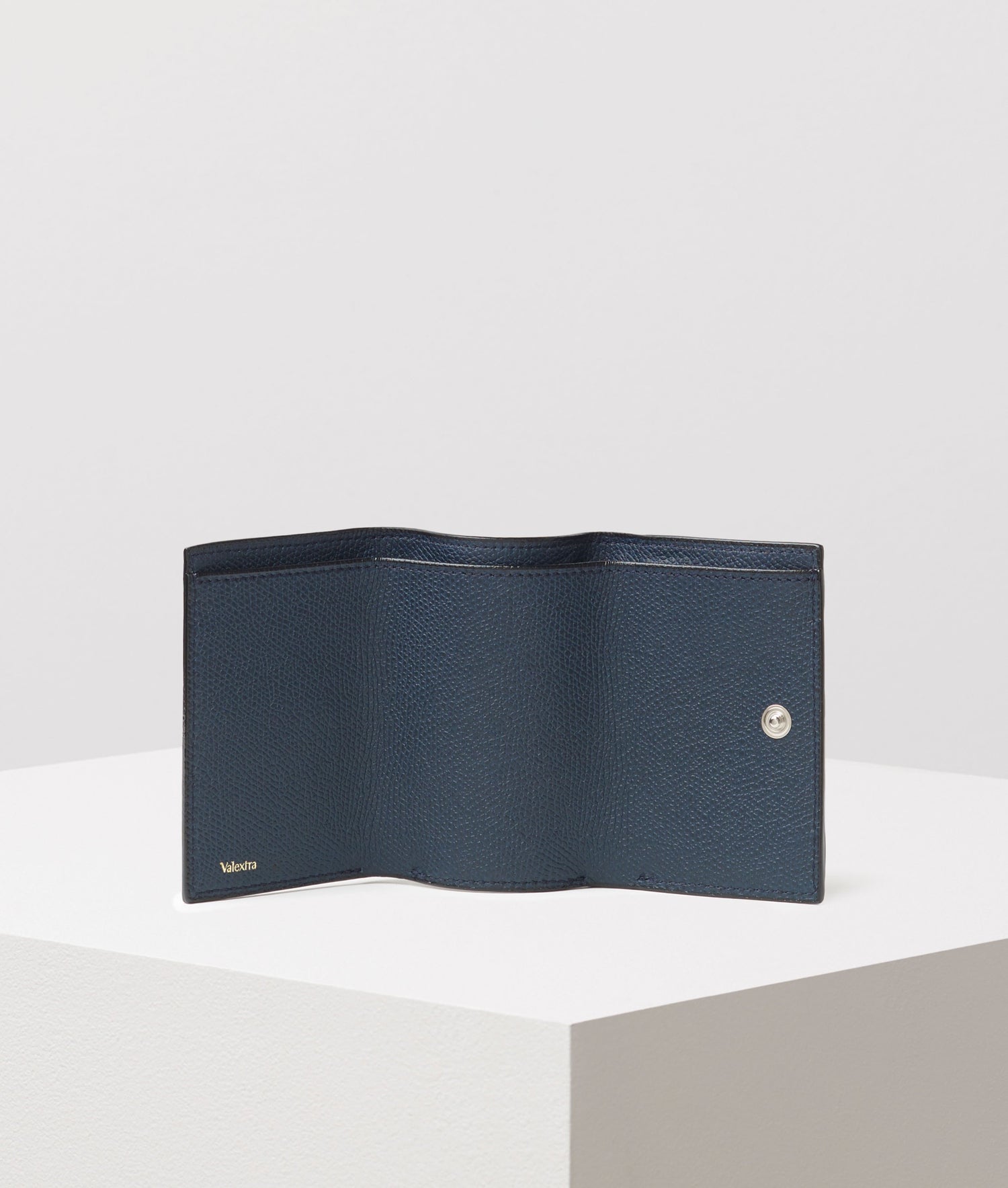 3つ折りウォレット。前面にコインケース、札入れの中には3カードホルダー付き。 コバと呼ばれる革をカットした端の部分にヴァレクストラ独自の染料”Costa”を手作業で何層にも塗り重ねて磨き上げました。