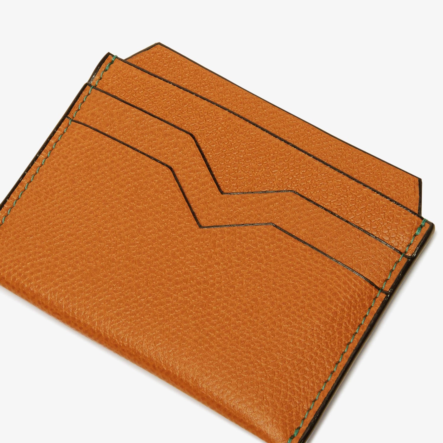 さりげなくエレガントな素材感のカードホルダーは、いつの世も必ず手元に置いておきたいアイテムです。ブランドの象徴であるV字カットが施された4つのクレジットカード用のスロットと中央に2つの仕切り付きスロット。ライナーは革張り。