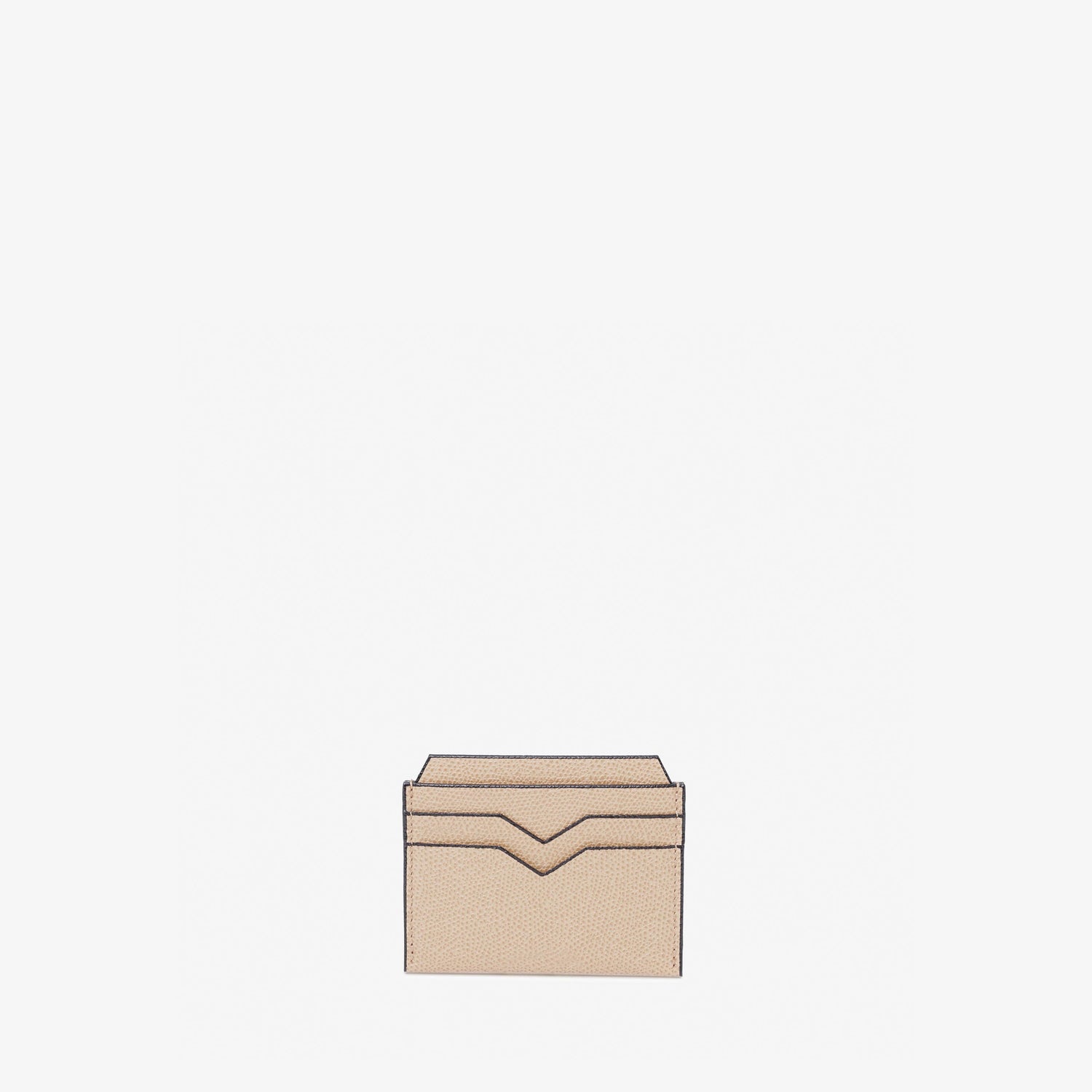 さりげなくエレガントな素材感のカードホルダーは、いつの世も必ず手元に置いておきたいアイテムです。ブランドの象徴であるV字カットが施された4つのクレジットカード用のスロットと中央に2つの仕切り付きスロット。ライナーは革張り。
