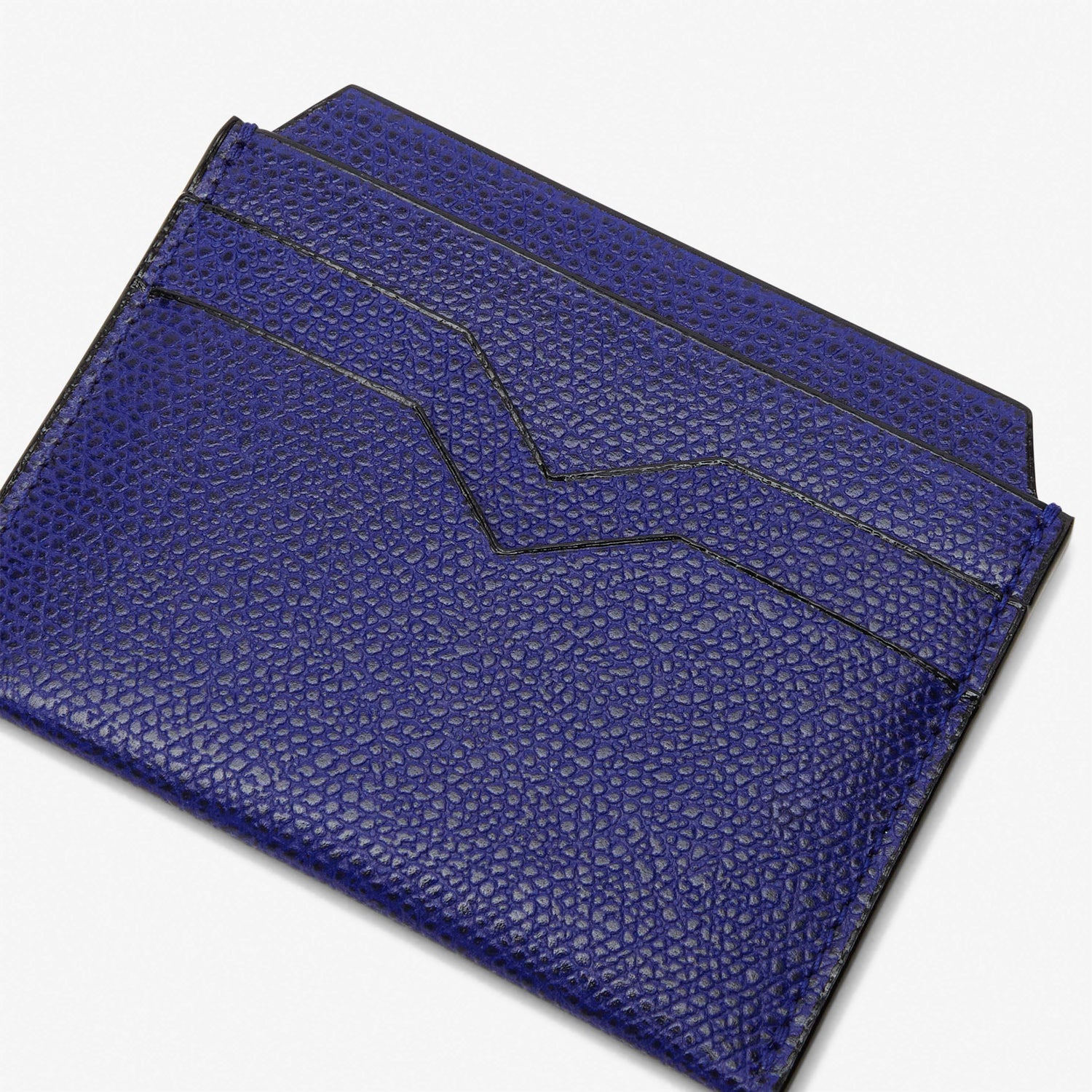 さりげなくエレガントな素材感のカードホルダーは、いつの世も必ず手元に置いておきたいアイテムです。ブランドの象徴であるV字カットが施された4つのクレジットカード用のスロットと中央に2つの仕切り付きスロット。ライナーは革張り。