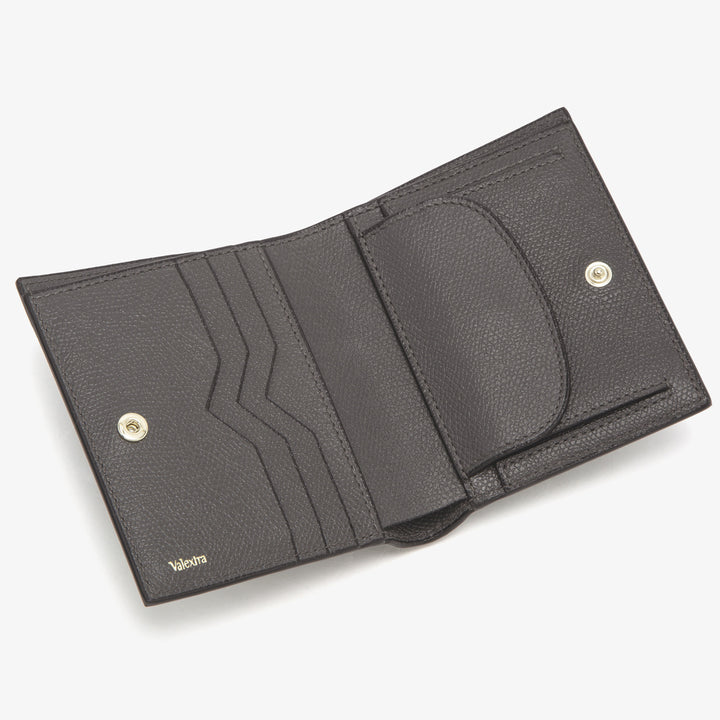 このコンパクトな財布は、エルゴノデザインである V カットを施したカードスロットとスナップフック付きの小銭入れを備え、カードと現金をきちんと整理して収納できます。パーツごとの境界を際立たせる手描きのインキオストロのラインや、コバに施された黒漆のコスタエッジペインティングなどのディテールが、ブランドの職人技へのこだわりを強調しています。