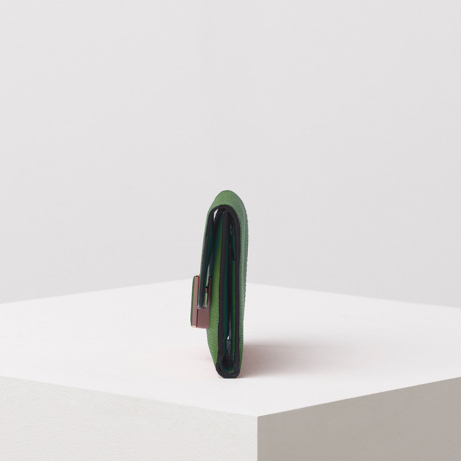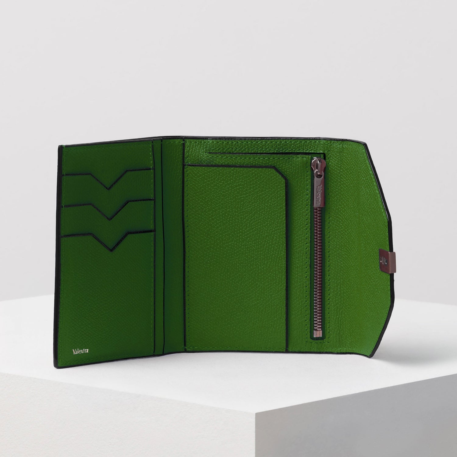 アイコニックなレザーで覆ったクロージャー付きのイジィデウォレットは、ヴァレクストラのスタイルをハンディな折りたたみ式の形に凝縮し、カードや小銭、紙幣が入る十分なスペースを確保しています。現代社会を生きる女性にとって究極の万能型アイテムで、エレガンスと実用性のタイムレスなミックスが特長です。