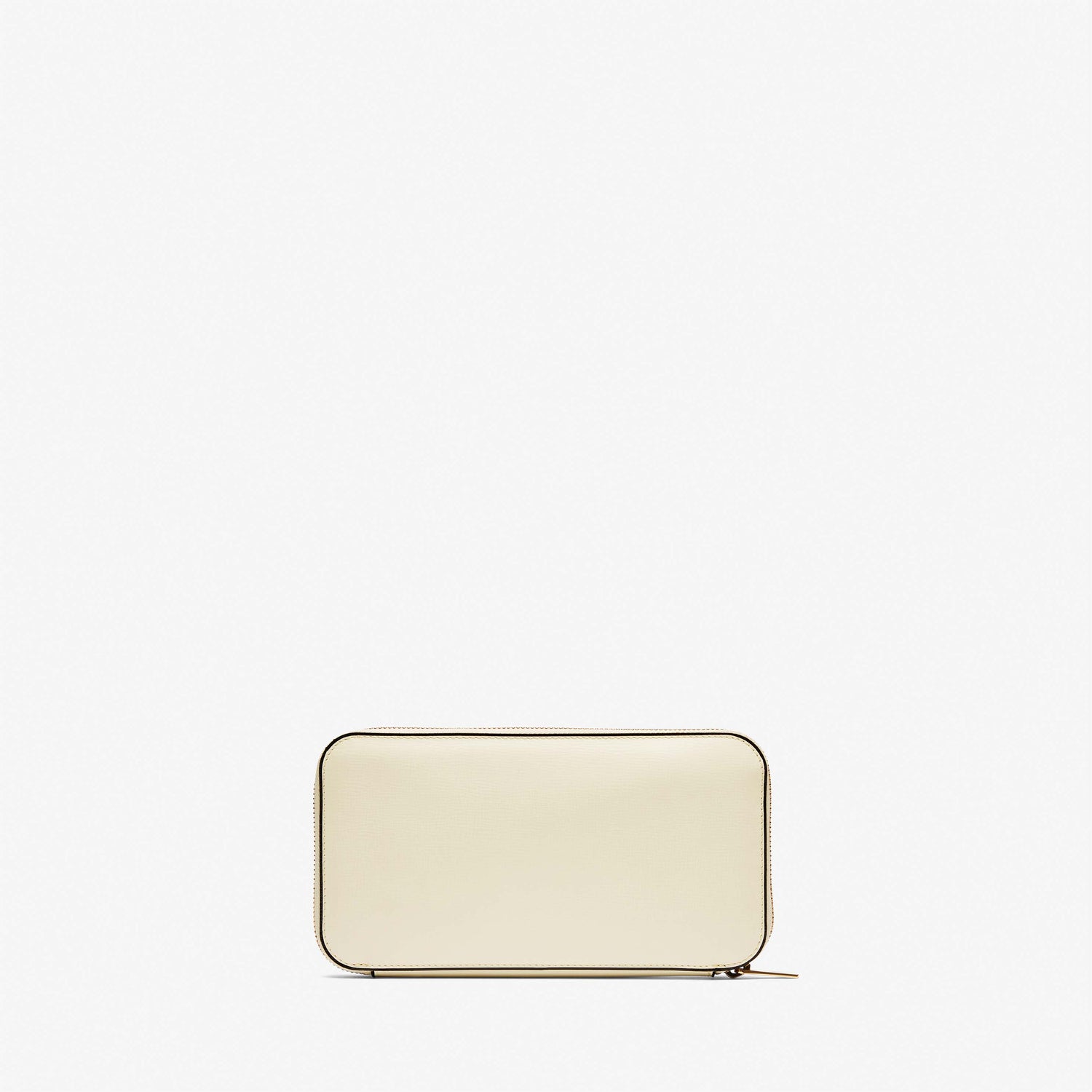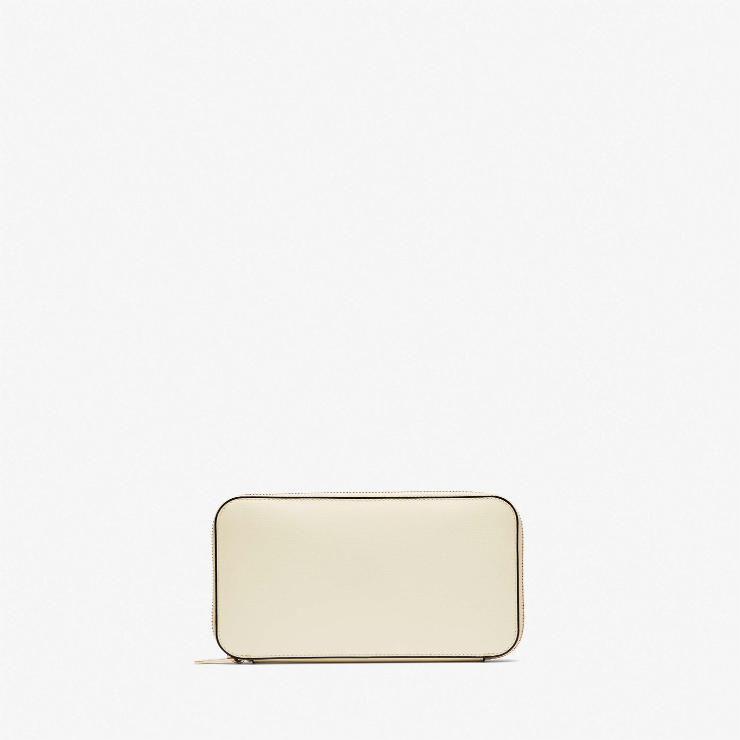 ラウンドジップ式の長財布。豊富なカラーバリエーションを展開しています。内側にはブランドの象徴であるV字カットが施された12枚用クレジットカードホルダー、紙幣や書類を収納できるフリーポケット2つと中央にはジップ式コインケース付き。パスポートも収納できるサイズです。