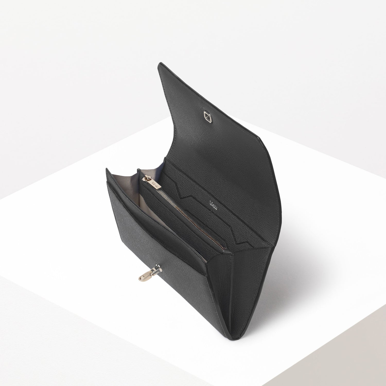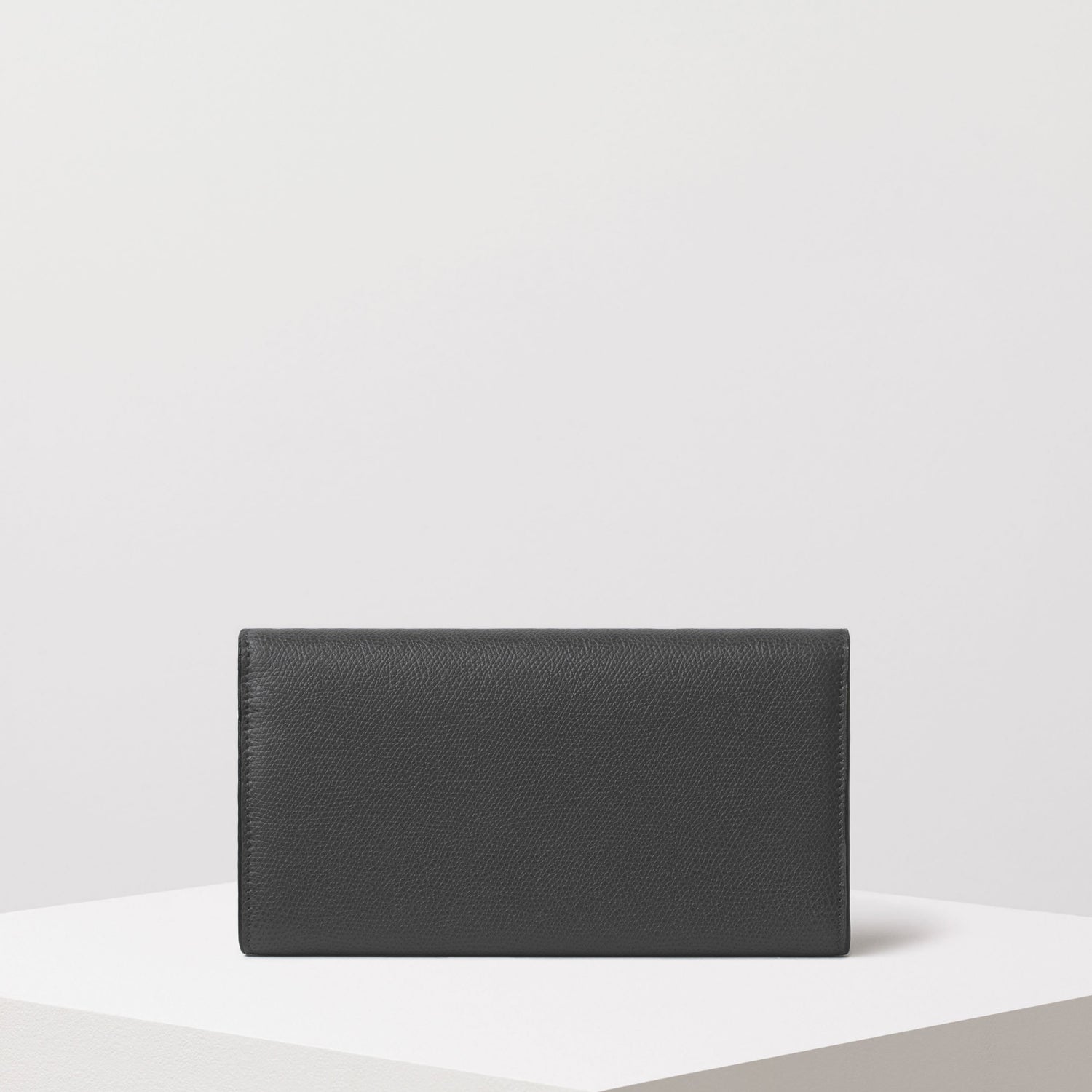 エレガントで時代にとらわれない都会派のウォレットは、カードや紙幣、硬貨を入れるスペースを十分に確保しています。どのバッグに入れても持ち歩きやすく、アイコニックな”Pignone”(ピニョーネ)金具が美しく飾ります。素材はソフトカーフスキン製。ディテールはゴールドトーンの金具で飾り、内側にはスリップポケットが2つ、ブランドの象徴であるV字カットが施された12枚のカード用のスロット、中央にはジッパー式コインケースを含む5つのコンパートメント付き。