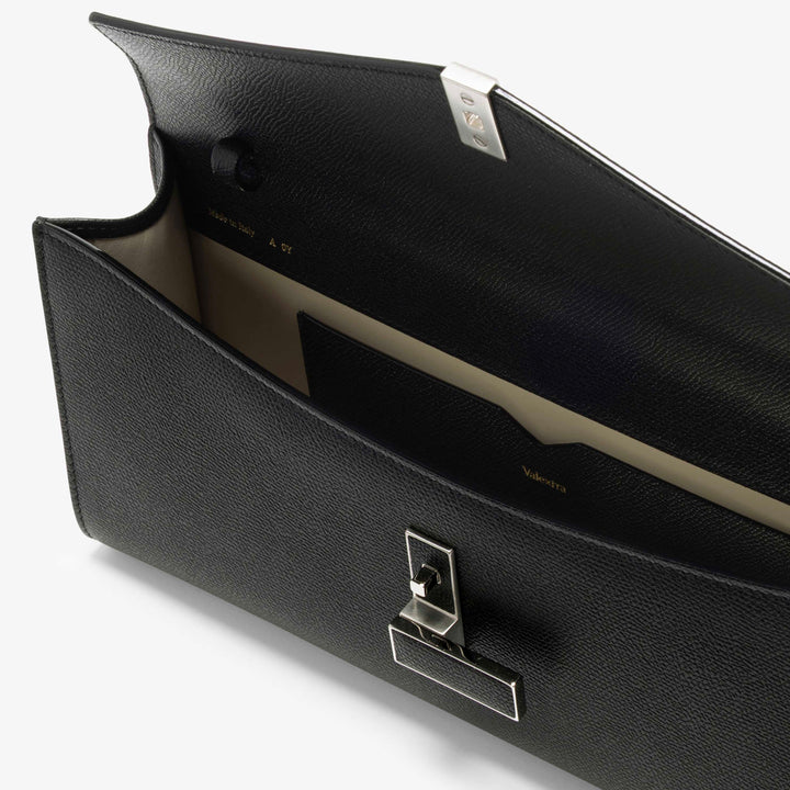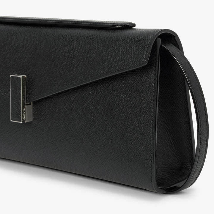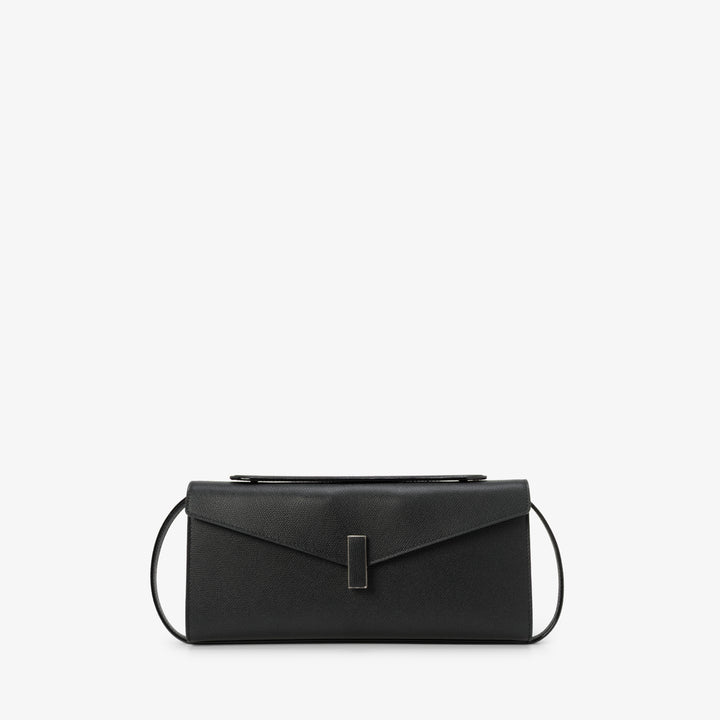 イジィデ クラッチバッグは、アイコニックなイジィデ ファミリーに加わった、日中からイブニングシーンまで幅広く活躍する洗練されたクラッチバッグです。しなやかな触感が魅力のミレプンテレザーで仕立てられ、漆黒の艶やかなコスタエッジが全体を引き締めています。取り外し・調整可能なストラップにより、ショルダーやクロスボディとしてはもちろん、脇に抱えて、あるいは手に持ってもお楽しみいただけます。スマートな装いにもカジュアルなスタイルにも寄り添うタイムレスな存在として、内側には必需品を収める十分なスペースと、カード類をすぐに取り出せるVカットポケットを備えています。