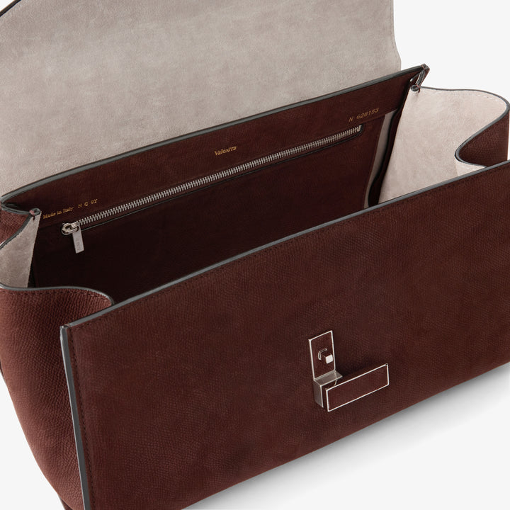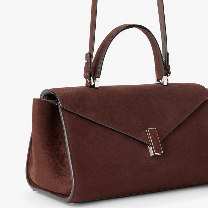 エンボス加工が施されたセンソレザーで仕立てたイジィデ エディターは、イジィデ ファミリーに、幾何学的な美しさを加えた新たな解釈として登場します。横長のシルエットと程よくリラックスした構造が、内容物に柔軟に対応し、日常のあらゆる装いに自然に寄り添うデザインです。内側には日常のシーンに必要なアイテムを余裕をもって収納できる中央コンパートメントを備え、ジップ付きポケットと取り外し・調整可能なショルダーストラップを装備。艶やかなコスタエッジと、イジィデを象徴するクロージャーで仕上げられた、ヴァレクストラのデザイン哲学を体現する、現代のライフスタイルに寄り添うアイコンです。