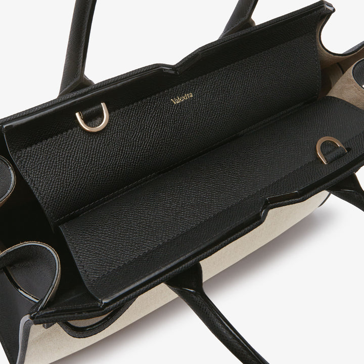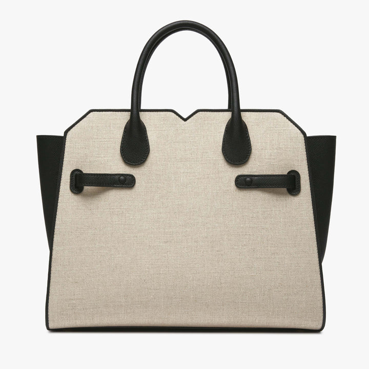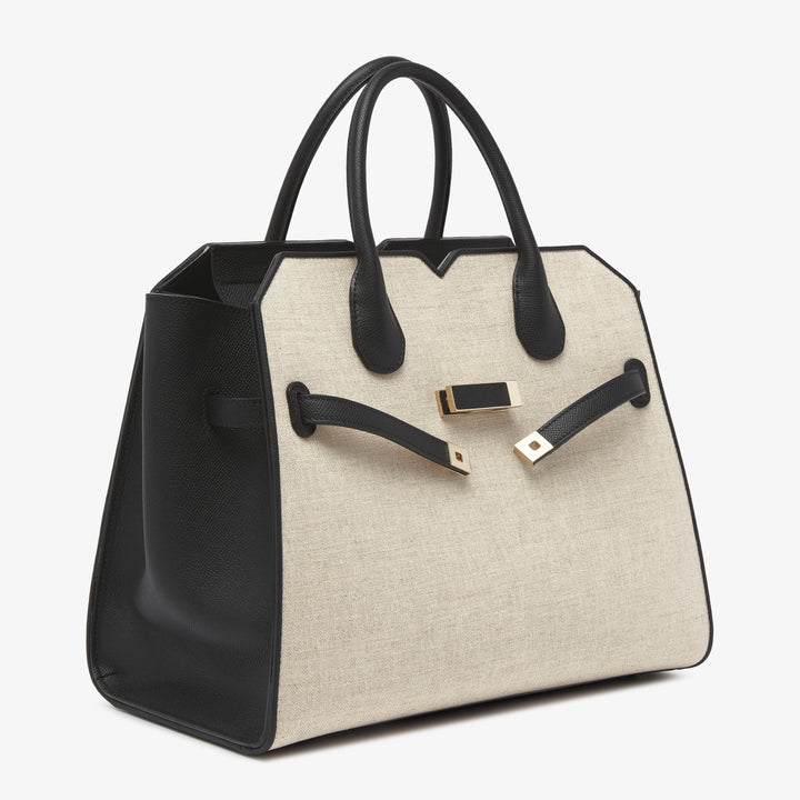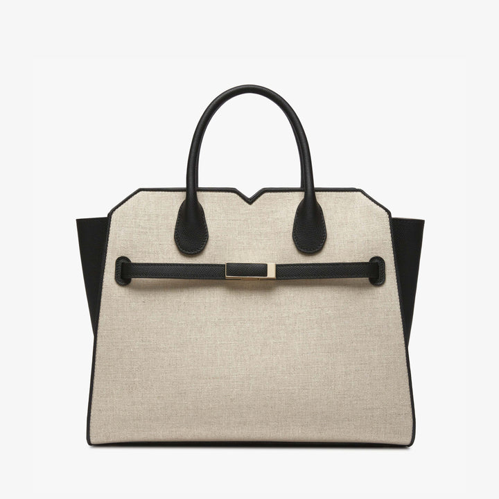 キャンバス・2 ハンドル・ミラノバッグ・ミディアムは、非常にしなやかなミレプンテ・ソフトレザーとキャンバスを贅沢に使用し、職人技が息づくラグジュアリーを体現した一品です。