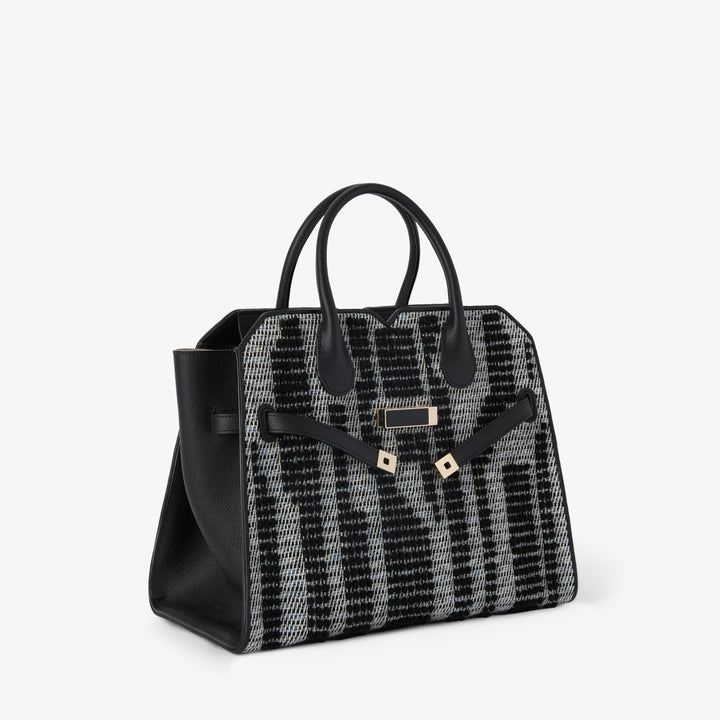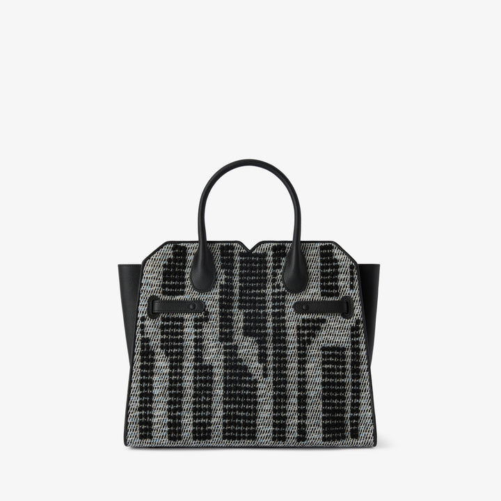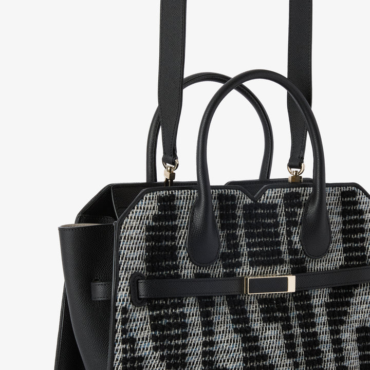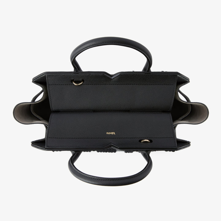 ミラノバッグ ミディアム ピビオーネは、クラフトマンシップ、革新性、そして美しさを称える印象的な一品です。このシグネチャーシルエットは、サルデーニャの伝統技法ピビオーネによって新たな表情を纏っています。この技法では、グレーとブラックの糸を用い、小さなループ状に丁寧に織り込むことで、立体的な森の情景を描き出しています。その仕上がりは、クラフツマンシップと創造性が融合したラグジュアリーなキャンバスそのもの。一点ごとに異なる表情を持つ、特別なカプセルコレクションです。ハンドルやベルトディテールには、ブランドを象徴するブラックのミレプンテレザーを使用し、この印象的なバッグに際立つフレームを与えています。