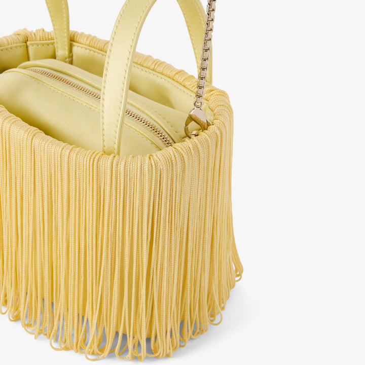 バケットバッグ ナノ ソフト スウィングは、フリンジをあしらったアプリケーションが揺れ動く、素材の美しさを讃える一品です。サテンで仕立てられた構築的なバケットシェイプは、トップハンドルに加えて取り外し可能なメタリックストラップも備え、イブニングシーンに映える存在感を放ちます。内側には取り外し可能なサテンポーチを装備し、貴重品をしっかりと保護。外側の小さなポケットには、チケットや鍵などの細かなアイテムをスマートに収納できます。
