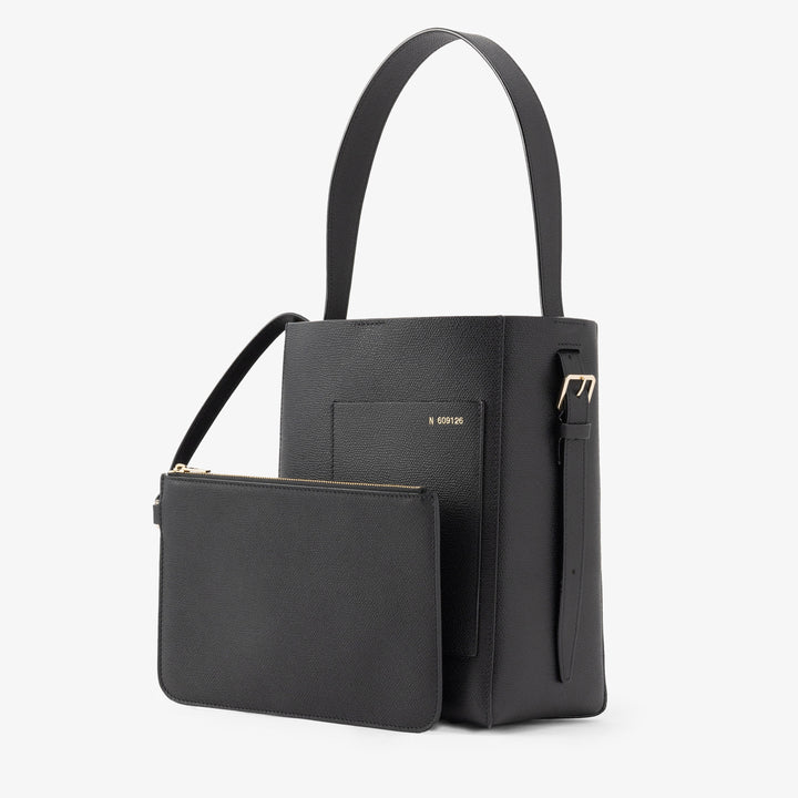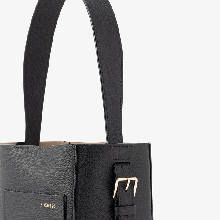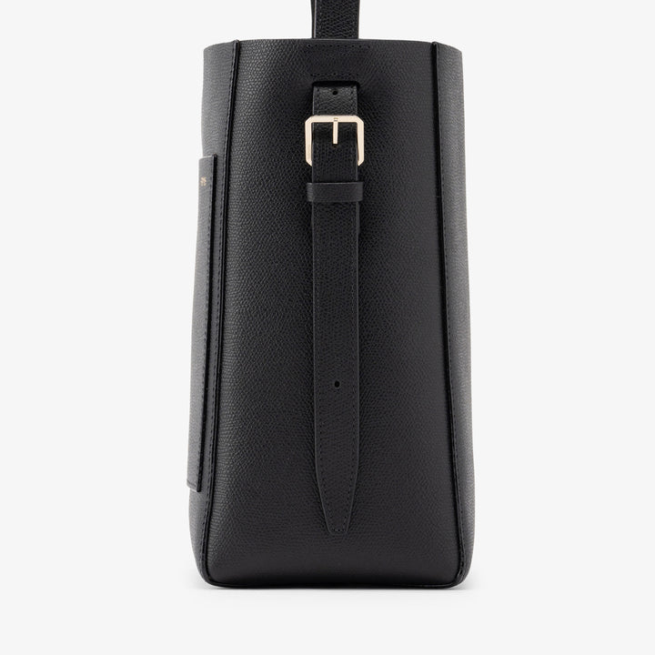 独特の表情を持つミレプンテレザーを使ったバケットバッグスモールは、ミラノのサンバビラにあった一号店のウィンドウのカーブを模した外ポケットや職人がすべて手仕事で仕上げるコスタエッジなど、ヴァレクストラのシグネチャーで構成されています。