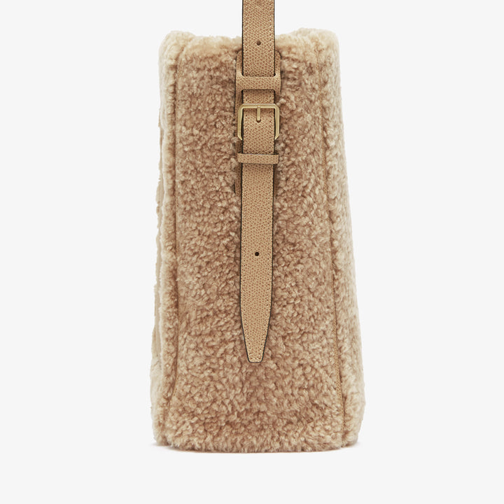 シアリング・バケットバッグのスモールサイズは、当社で最も人気のあるバッグのひとつを触り心地もよく遊び心のある素材でアレンジしたものです。ソフトでオープンなシルエットの特徴を生かしながらも、バッグの内側には貴重品を安全に保管できる取り外し可能なレザーポーチをプラス。ショルダーストラップはお好みに合わせて調整できます。